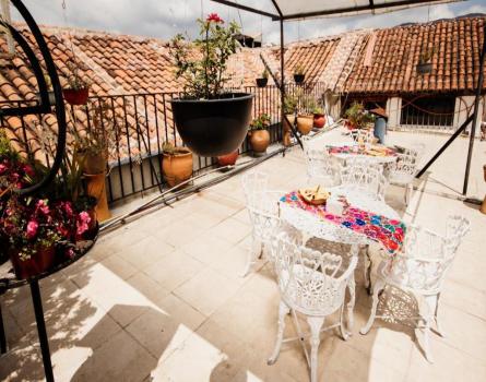 Sus habitaciones, decoradas con detalles artesanales y colores tradicionales, ofrecen un ambiente acogedor ideal para relajarse después de recorrer la ciudad. Los hermosos patios interiores, rodeados de flores y arcadas, crean un ambiente tranquilo que invita a disfrutar de un café, leer un libro o simplemente contemplar la atmósfera colonial que distingue al hotel.