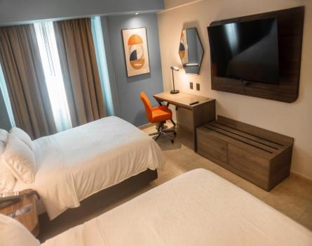 El Holiday Inn Express ofrece habitaciones modernas con camas confortables, aire acondicionado, Wi-Fi rápido, escritorio y amenidades de nivel internacional. El hotel incluye desayuno caliente, piscina, gimnasio, centro de negocios y traslados cercanos al aeropuerto bajo disponibilidad.